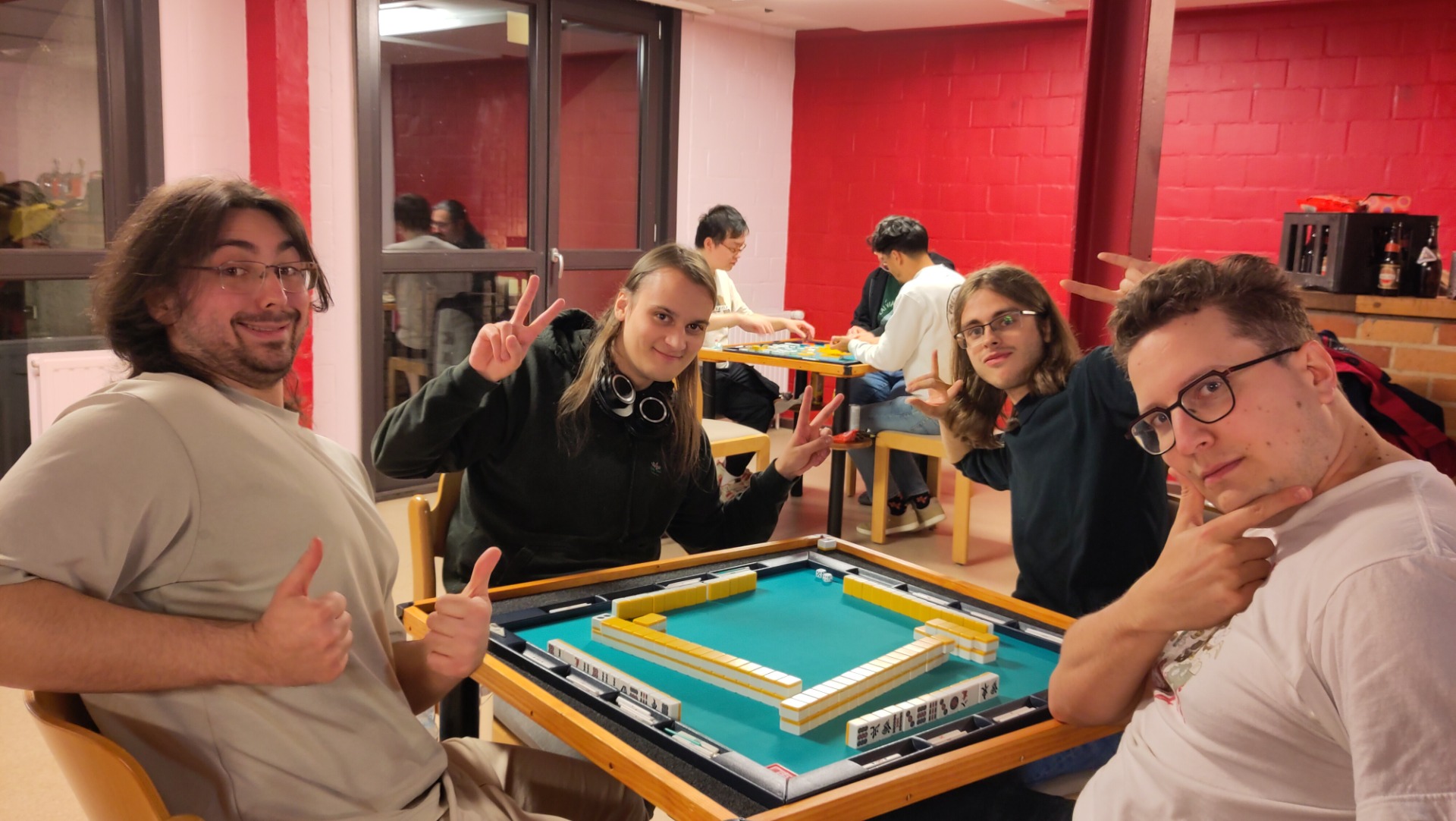 Plusieurs des joueurs belges participent aux tournois, mais on joue surtout régulièrement entre amis. Il est frappant de constater que le mahjong est un jeu pour tout âge et qu'on peut le voir partout: dans la rue, aux foires de jeux ou d'animé, mais aussi dans les romans, les films et les séries télé. D'Agatha Christie à Dr. House et Julia Roberts, tout le monde connait le mahjong!