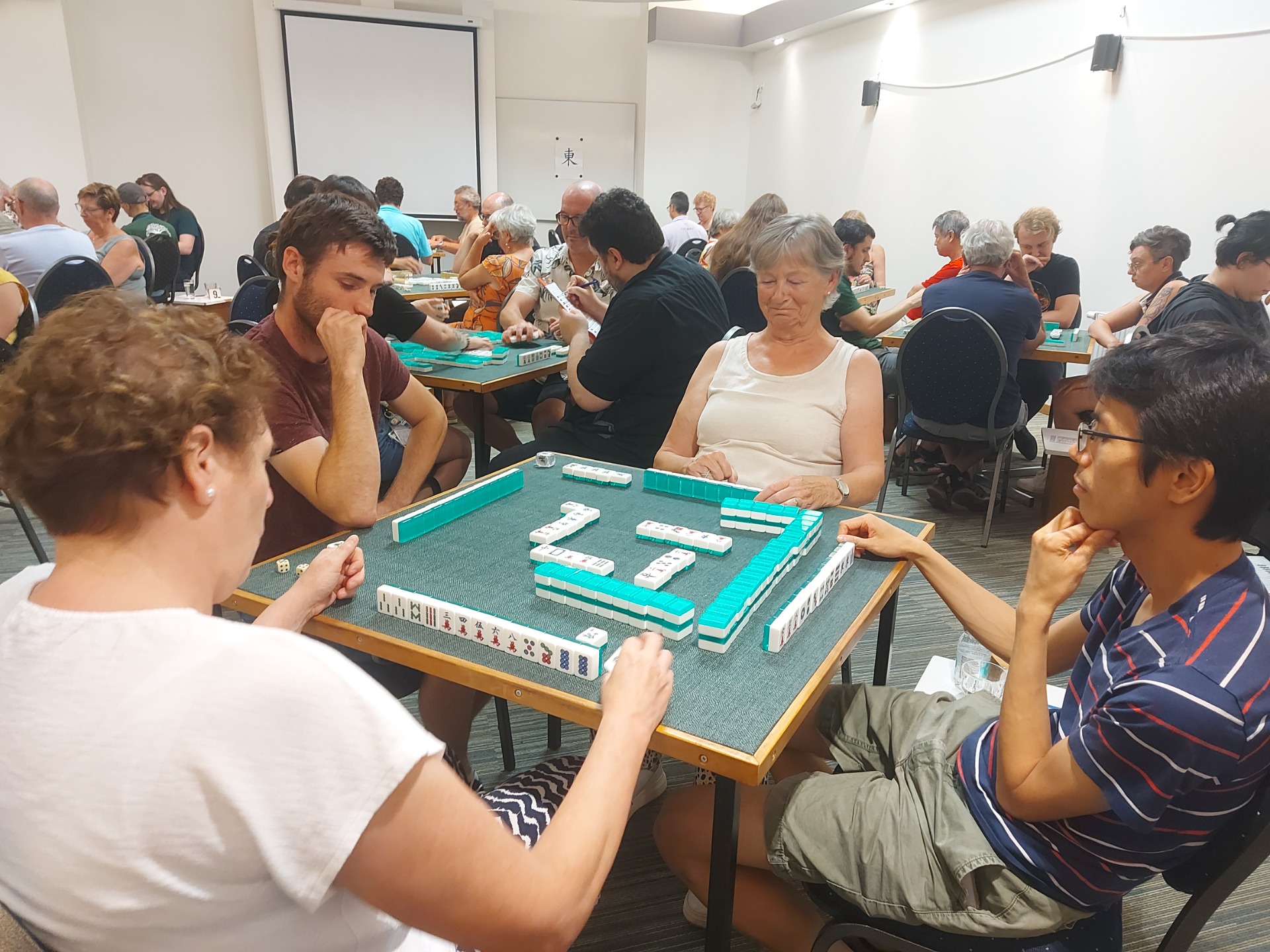 Maar laten we bij het begin beginnen. De Leuvense mahjongvereniging de Rode Lotus startte haar activiteiten in 2009 en speelde toen uitsluitend Mahjong Competition Rules of ook wel Chinese official. Het zal in 2017 zijn geweest dat de Rode Lotussen als afscheidsgeschenk van de Chinese studenten Yuhao en Hai een Riichi set en junk mat kregen en dus ook onder zachte dwang Riichi gingen leren. In mei 2022 (post-covid) schakelde de clubcompetitie helemaal over op Riichi mahjong. De Rode Lotus werd daarmee de eerste en enige Belgische club die beide disciplines beoefent. Een opportuniteit van samenwerking met de perfect uitgeruste Leuvense bridgeclub Pieterman maakte het mogelijk om na twee kleine informele Mahjong Salon toernooitjes in 2022 uit te pakken met dit eerste internationale dubbeltoernooi, pal in het centrum van onze mooie historische stad.